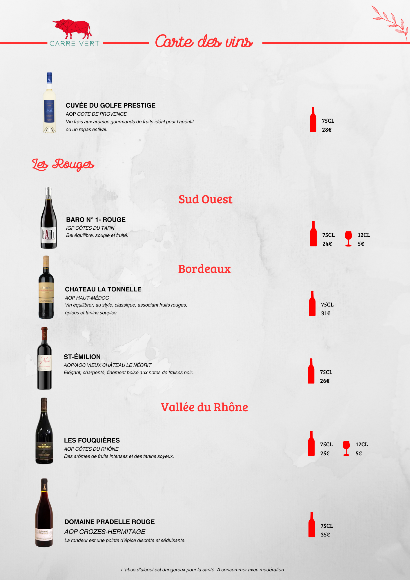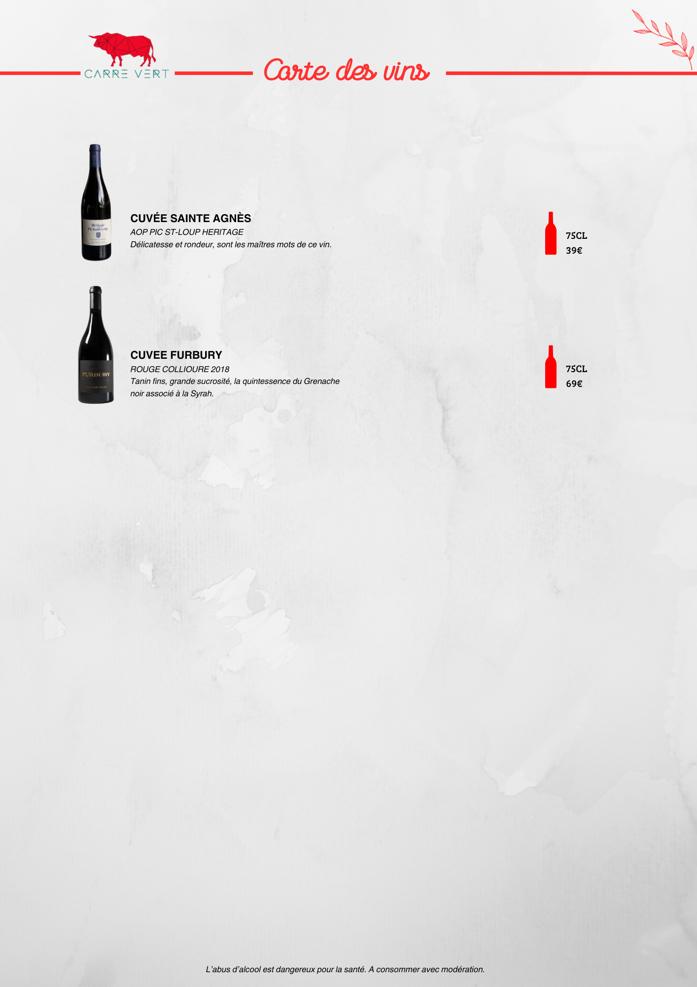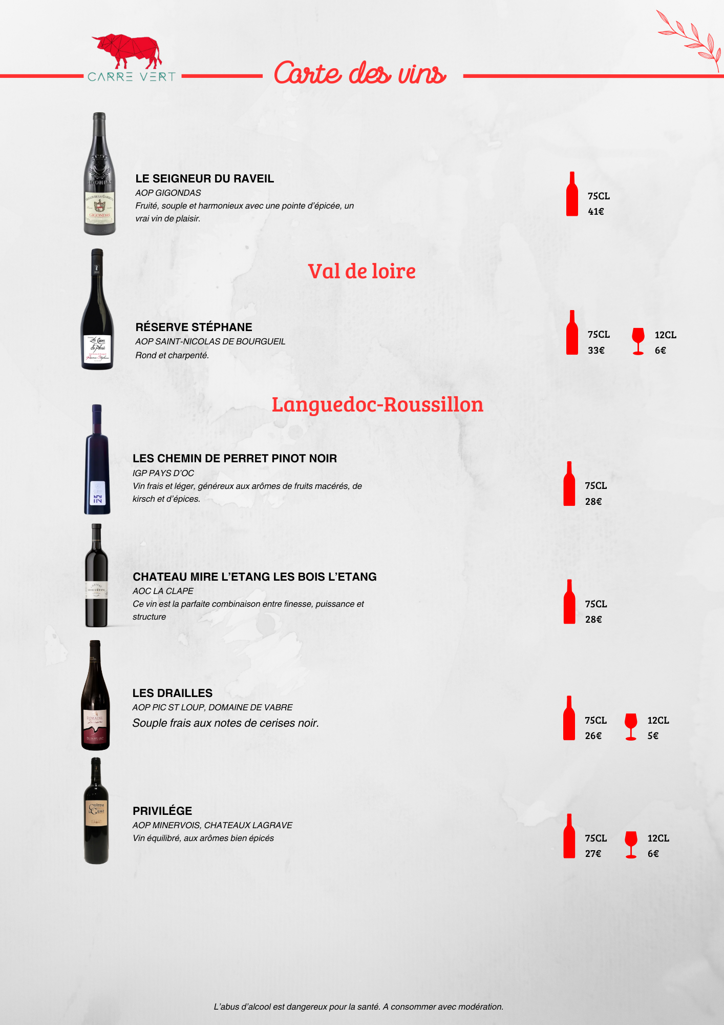 Carte des boissons
